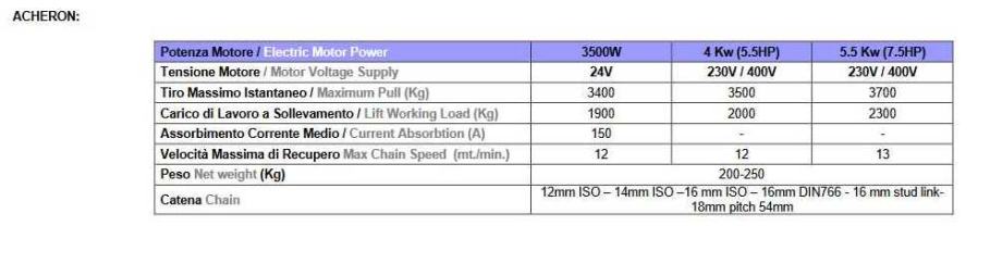 White painted horizontal axis winch. The ACHERON can use chains from 14 mm to 17,5 mm with stud link in diameter. With different drives and recommended for boats up to 37 m.