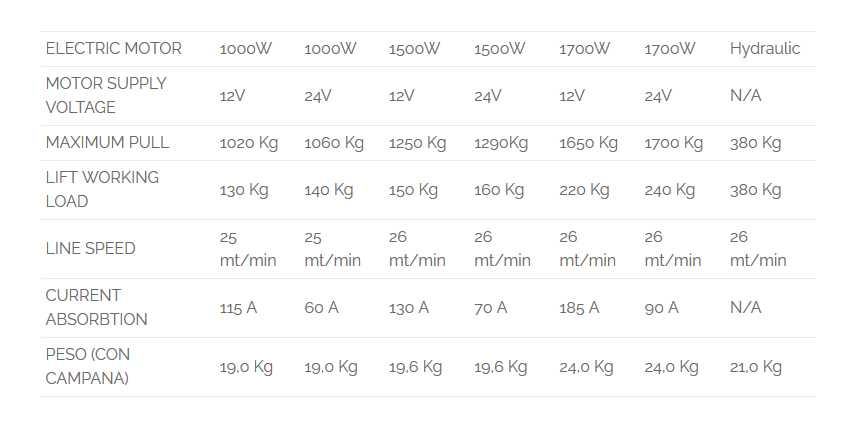 MAXIMUM PULL 1020 Kg 1060 Kg 1250 Kg 1290Kg 1650 Kg 1700 Kg 380 Kg