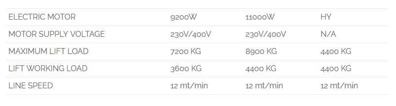 LIFT WORKING LOAD 3600 KG 4400 KG 4400 KG