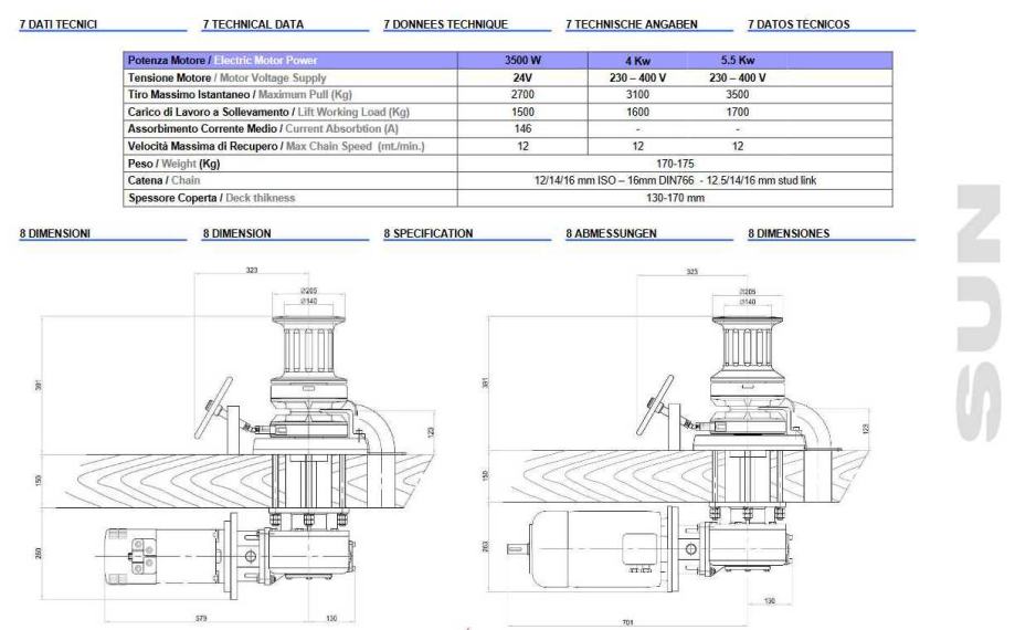 Safety standards and certifying bodiesrequire peremptorily that, during thestanding ofthe anchor, the load must beheld by a chain stopper or a highresistance fixing point.The user is responsible for guaranteeingthat during navigation the anchor isproperly stowed and fixed. Thisprecaution is moreimportant when thenavigation speed ishigher and seaconditions are worse. Indeed, an anchorpaid out by mistake during navigationcan have very serious effects.Considering its position and not alwaysfrequent use, the anchor windlass isparticularly exposed to oxidationandcorrosion risk; therefore, it is necessaryto arrange a constant inspection of itsparts and a due maintenance.Make sure to have read and understoodevery part of this manualbeforeproceeding with installation and use.Only persons who know how tooperateshould be authorised to use the anchorwindlass. Should there be doubts on itsinstallation or use, refer always to askilled consultant.•Anchor windlasses used in aninappropriate way can causedamagesto persons and/or things.• Pay the utmost attention during theuse of powerful equipment.• Even the most careful use can be asource of damages, even serious.• Italwinchproducts are suppliedexclusively for recreationalnauticaluse. Italwinchdeclines allresponsibilityfor improper uses.• Pay the utmost attention so that arms,legs, fingers, hair, and clothes do notget entangled in the chain or gipsy.• Before operating the capstans, makesure that there are no persons in waterin the vicinity.