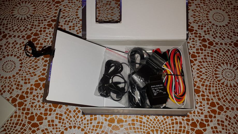 Uz uređaj se dobije daljinski, GPS i GSM antena, mikrofon,relej sa instalacijom i externi shock senzor.