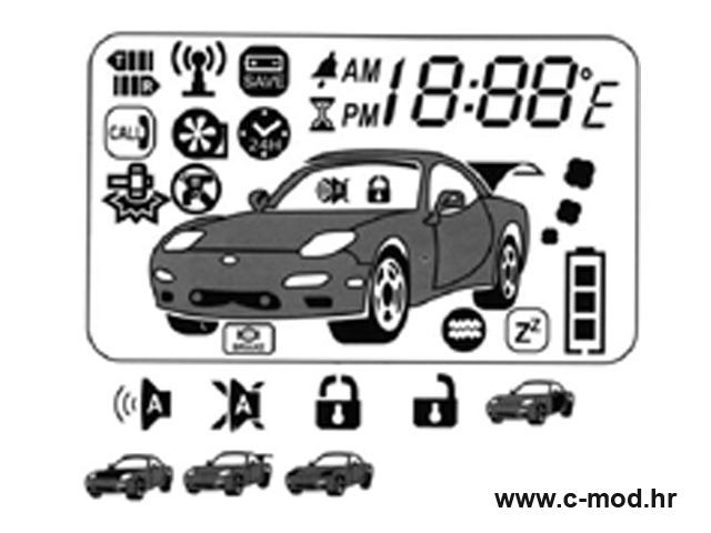 Dvosmjerni auto alarm sa LCD daljinskim upravljačima i prikazom statusa automobila.