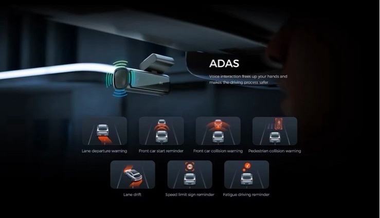 Rezolucija 4K je stvarno 4K. Slika live je brutalno cista. Kameru mozete spojiti bezicno na svoj ekran u autu ako vas auto radio sa ekranom ima tu mogucnost. Androidi nemaju sa tim problem. Mozete ju spojiti i direkno na svoj mobilni telefon sa mogucnošcu slanja snimke bez da vadite mikro memorijsku karticu. Kamera ima ADAS opciju. Znaci ima detekciju upozorenja koja reagira na ljude, zivotinje i druge automobile u prometu. Zatim, upozorava vas na prebrzu voznju u koliko predete brzinu ogranicenja. Sve je to prikazano lijepo vizualnim efektom na ekranu. ( pogledaj video) Onda ima glasovne komande. Mozete reci na glas kameri da pocne snimati, zaustaviti snimati. Slikati i mnogo mnogo toga. Uputstva su u kutiji.