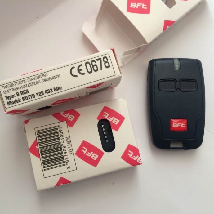 Prodajem NOVI zapakirani daljinski upravljač za garažna vrata, kliznu i krilnu kapiju, rampu, portun ili lesu BFT MITTO 2 ili BFT Cool2 transmitter 433,92 MHz s dva kanala (dvije tipke), baterijom i uputama s mogućnošću kupnje dodatnog priborom za auto - kvačica za sjenilo samo za Mitto2/4 (stalak u koji se stavlja daljinski upravljač).