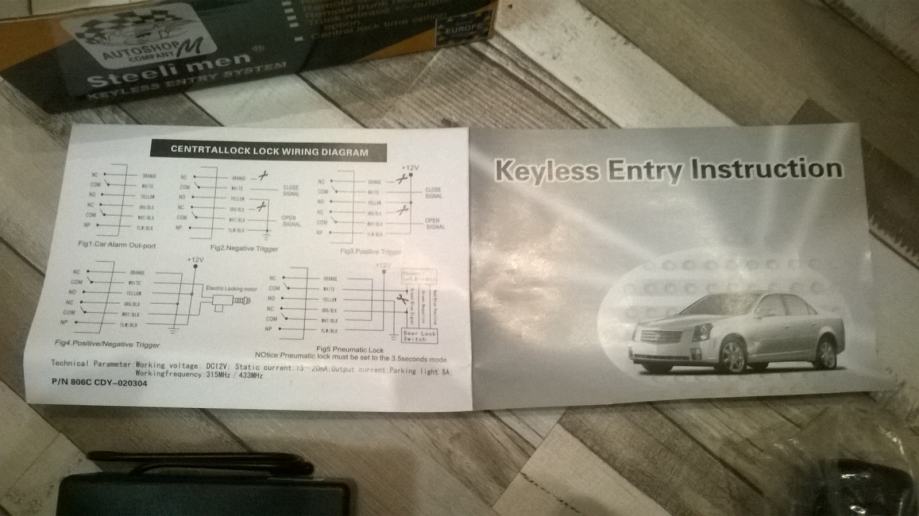 Prodajem set za daljinsko zaključavanje ispravno ali su ključevi za daljinski u trgovini zamijenjeni pa bi trebalo ponovo ubaciti kod.