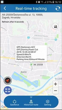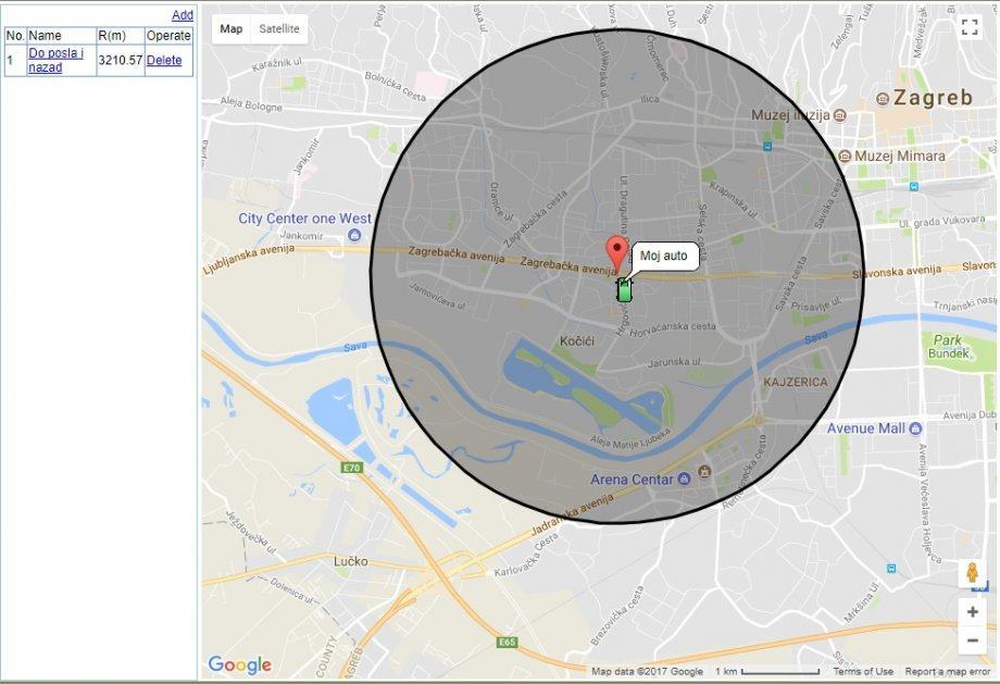 Osim pozicije mogu se postaviti alarmi poput alarma prekoračenja brzine iznad one koju ste postavili. Ili alarm kada vozilo izlazi iz prostora koje ste definirali na mapi.