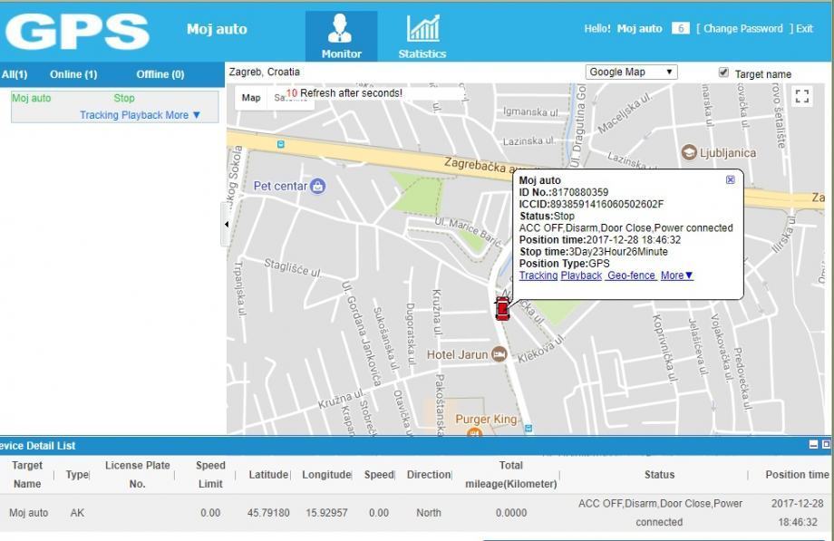 Uređaj se može podesiti da šalje poziciju svakih par minuta (podesivo) no i na događaj (prebrza vožnja, uključivanje motora, izlazak iz zadanog područja.