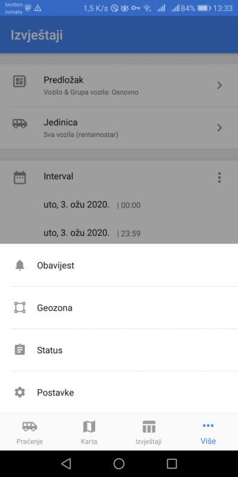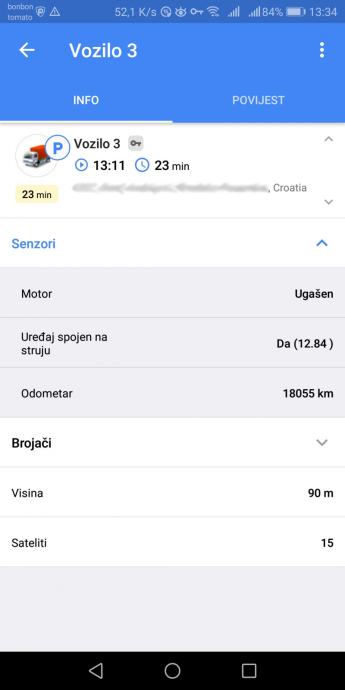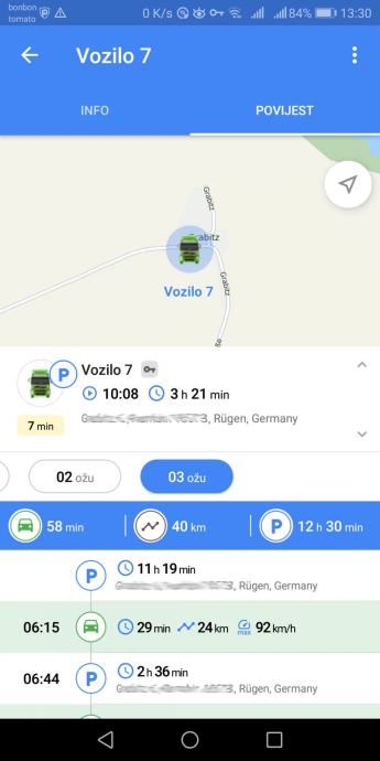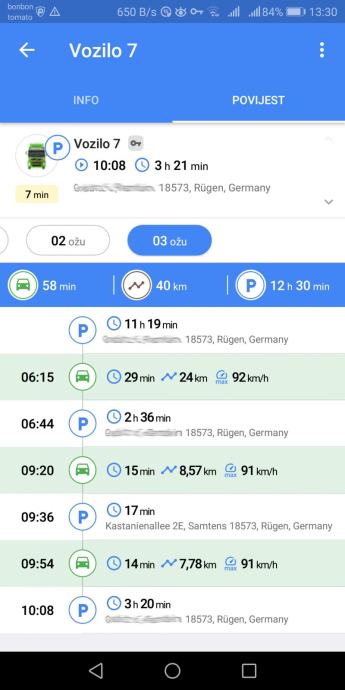 -Pregled povijesti kretanja, maksimalnih brzina, parkiranja i zaustavljanja (do 3 mjeseca unatrag)