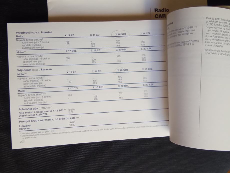 Opelova knjiga s uputstava za korištenje , sigurnost i održavanje za sve opelove motore s teh karakteristikama.