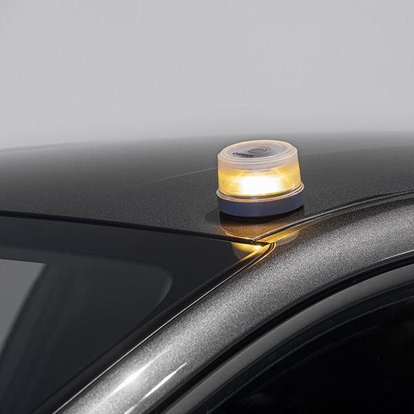 360° kompaktno LED narančasto (amber) upozoravajuće svjetlo za hitne slučajeve na cesti kao što su kvar vozila, prometna nesreća itd. Vidljivo iz velike udaljenosti zahvaljujući 12 jakih i dugotrajnih LEDica Napravljeno prema V16 standardu i regulaciji Površina otporna na klizanje i prašinu Magnet za lakše postavljanje na vozilo.