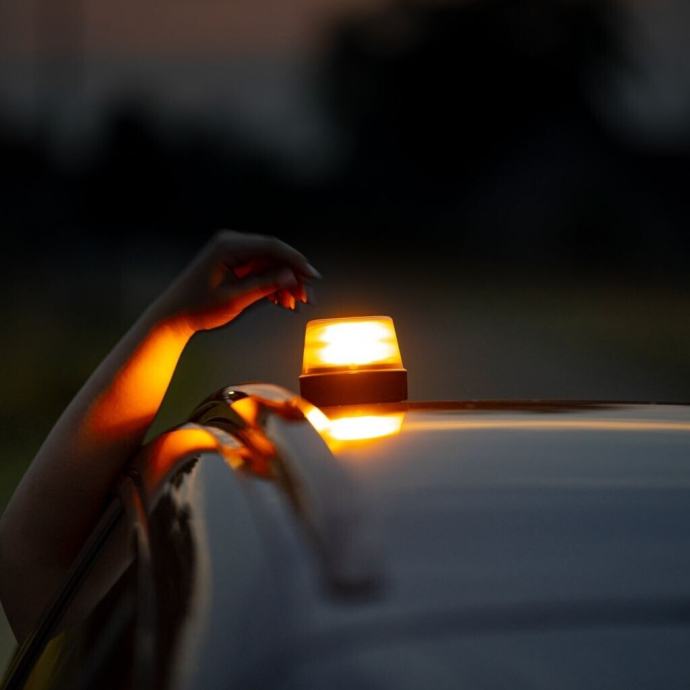 360° kompaktno LED narančasto (amber) upozoravajuće svjetlo za hitne slučajeve na cesti kao što su kvar vozila, prometna nesreća itd. Vidljivo iz velike udaljenosti zahvaljujući 12 jakih i dugotrajnih LEDica Napravljeno prema V16 standardu i regulaciji Površina otporna na klizanje i prašinu. Magnet za lakše postavljanje na vozilo.