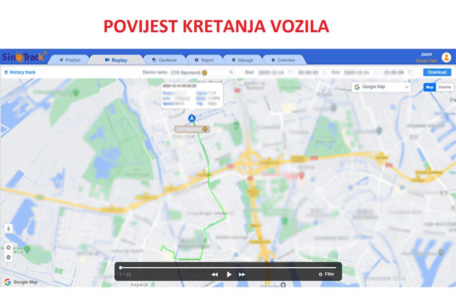 - u bilo kojem trenutku možete provjeriti povijest kretanja vozila u aplikaciji ili na web stranici