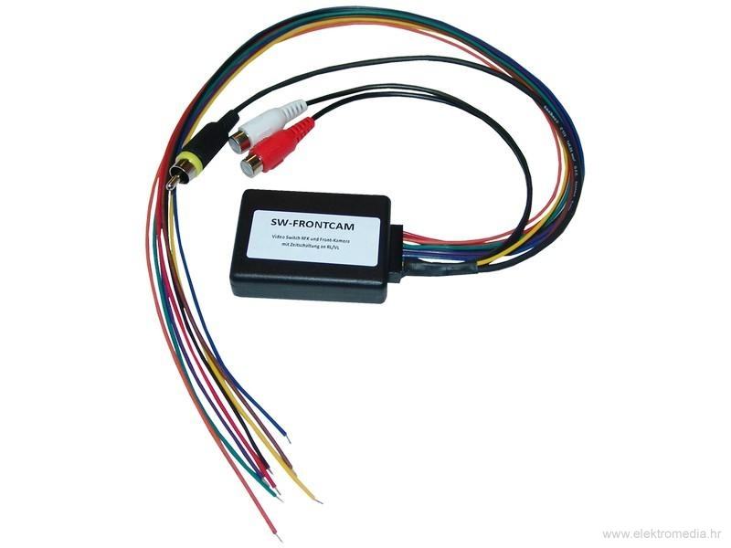 SW-FRONTCAM Video prekidač omogućuje spajanje prednje kamere na r.LiNK (RL2 i RL3) ili v.LiNK (RL2 i RL3) kamera module. Automatski prelazak na prednju kameru u trajanju od 10 sekundi nakon isključivanja stupnja prijenosa za vožnju unazad. Moguća je i ručna aktivacija prednje kamere u trajanju od 10 sekundi. Dva video ulaza - 1 video izlaz.