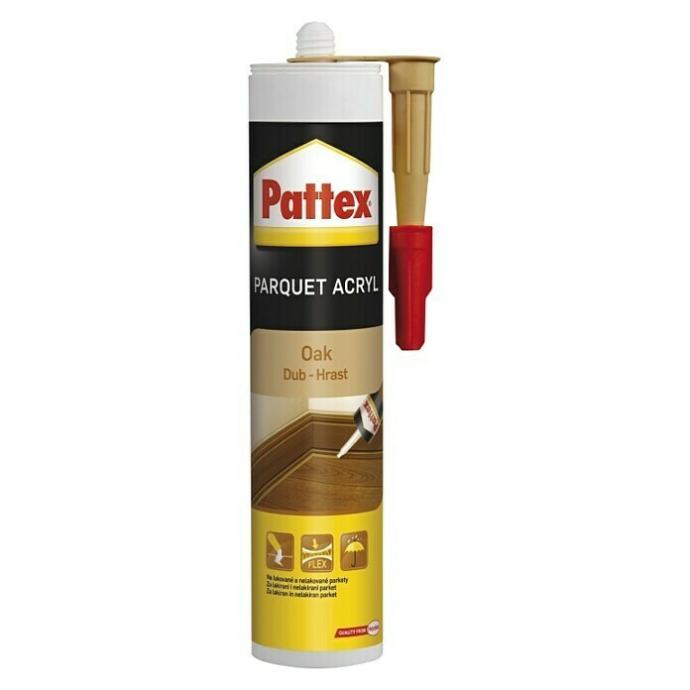 Pattex masa za brtvljenje, pogodna za brtvljenje parketa, drvenih podova, laminata, zidnih i podnih obloga. Na bazi poliakrilata. Onemogućava prodor vode, nečistoće i insekata. Mogućnost brušenja i bojanja.