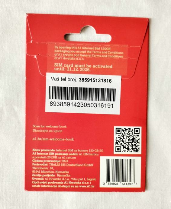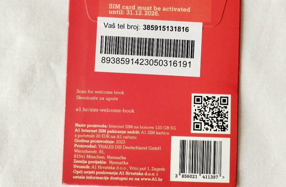 novo, tvornički zapakirano. Potrebno aktivirati prije 31.12.2026. Sa SIM karticom dajem i orginal račun od A1. Tel 0976706184