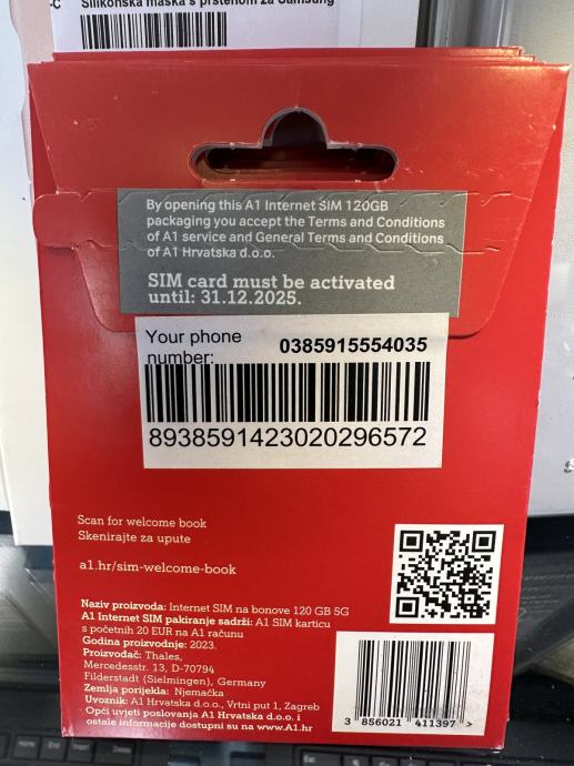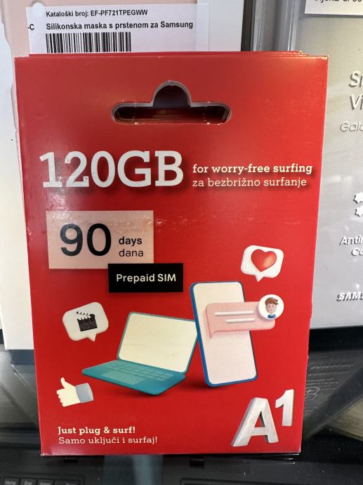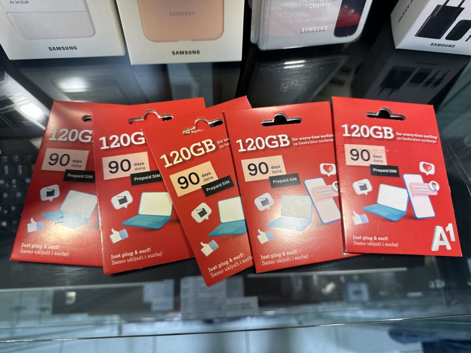 Novo zapakirano, original A1 prepaid kartica s data brojem i 120GB odmah na računu u trajanju od 90 dana od aktivacije.