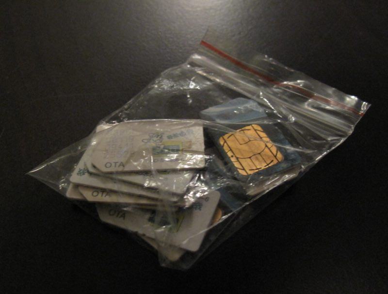 Paket od 10-ak SIM kartica koje služe za zavaravanje mobitela da je u njega stavljena valjana kartica.