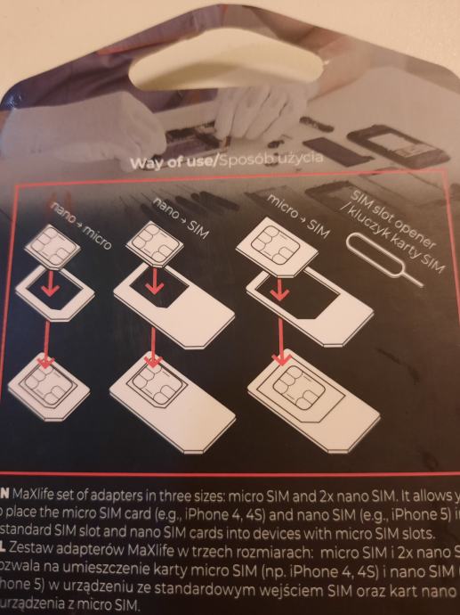 Komplet se sastoji od iglice, 3 SIM adaptera različitih UNI velicina i malene rašpice.