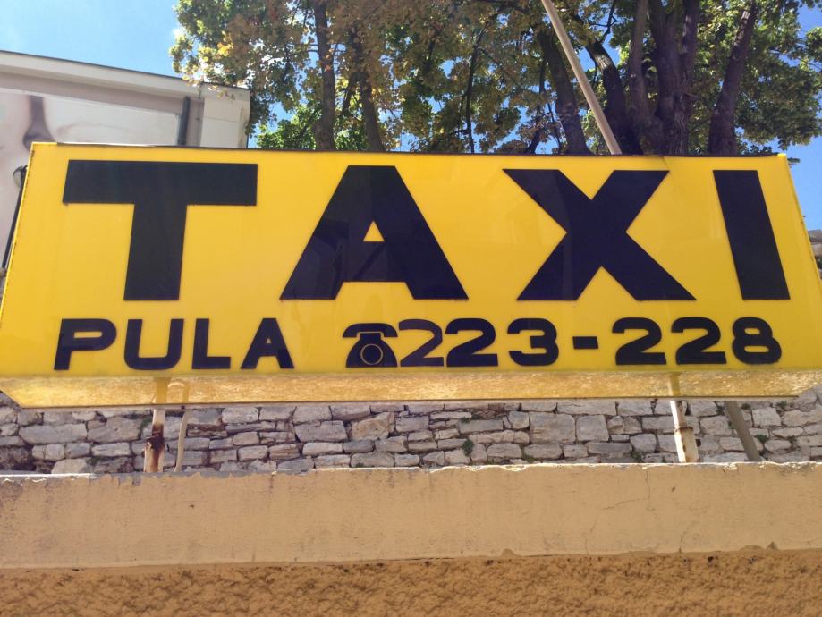 Broj taxi stanice u Puli je 052/223-228, a isti se nalazi u centru grada na taxi stajalištu. Informativna oznaka da je to broj taxi stanice postavljena je i na autobusom kolodvoru i u telefonskom imeniku.