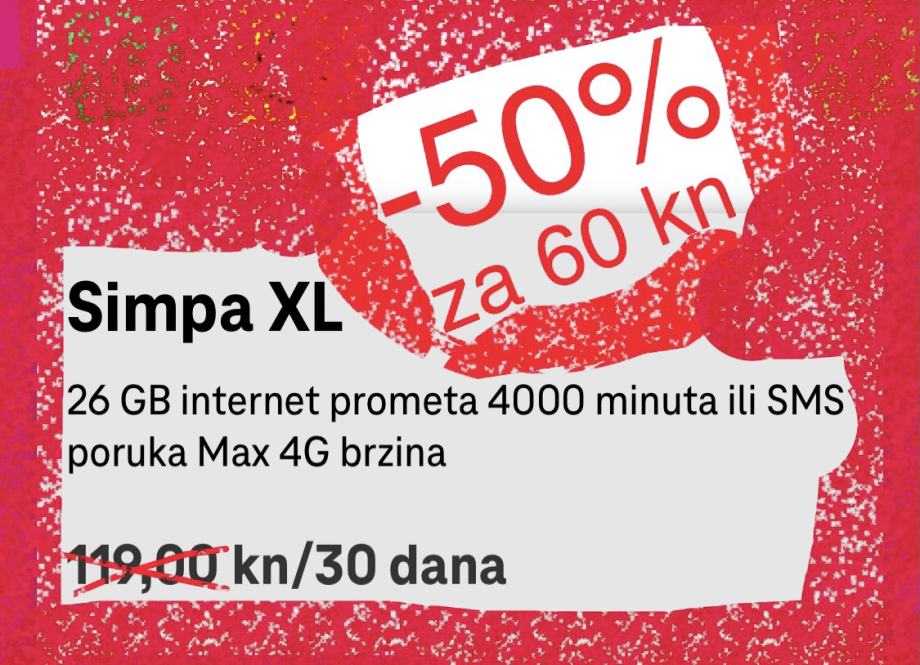 Na svom simpa broju aktivirate Simpu XL za 119 kn.