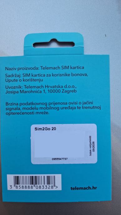 Prodajem Telemach SIM2GO start paket sa 2,65 EUR, neotpakiran, lako pamtljiv telefonski broj 0955547737