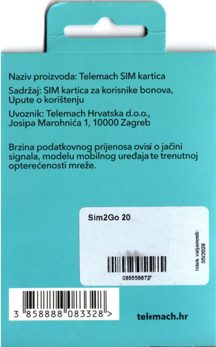 Prodajem Telemach SIM2GO start paket sa 2,65 EUR, neotpakiran, lako pamtljiv telefonski broj 0955588727