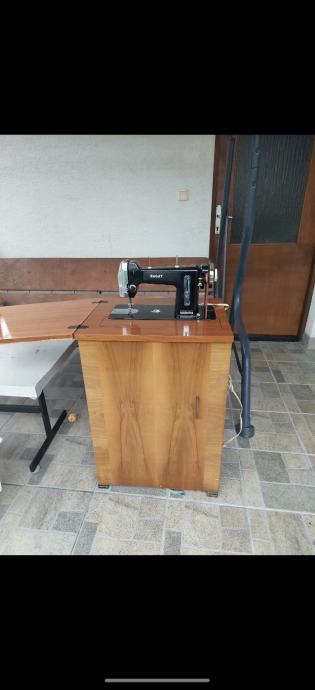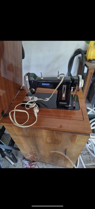 Prodajem BAGAT šivaću mašinu s nožnim pogonom, smještenu u drvenom ormariću koji služi i kao radna površina. Mašina je klasičnog crnog dizajna s jednostavnim upravljačkim elementima. Ormarić ima praktičan prostor za odlaganje pribora i materijala, a cijela konstrukcija uključuje nožnu pedalу za pokretanje mehanizma. Funkcionalna i pouzdana šivaća mašina prikladna za osnovne šivaće radove.
