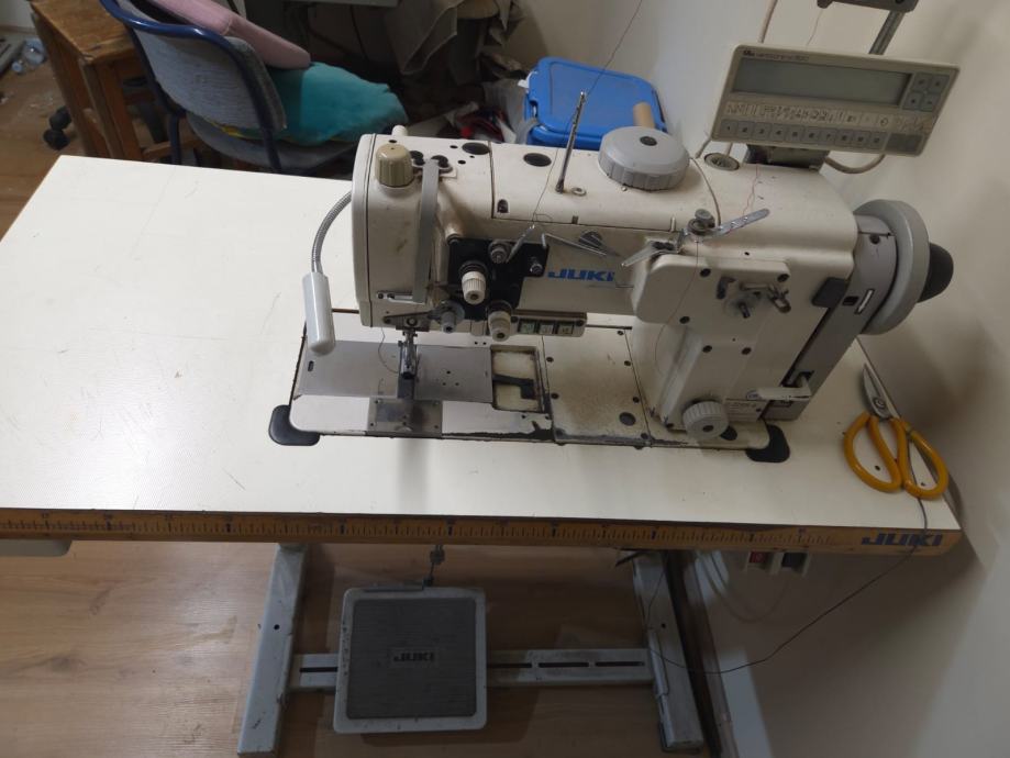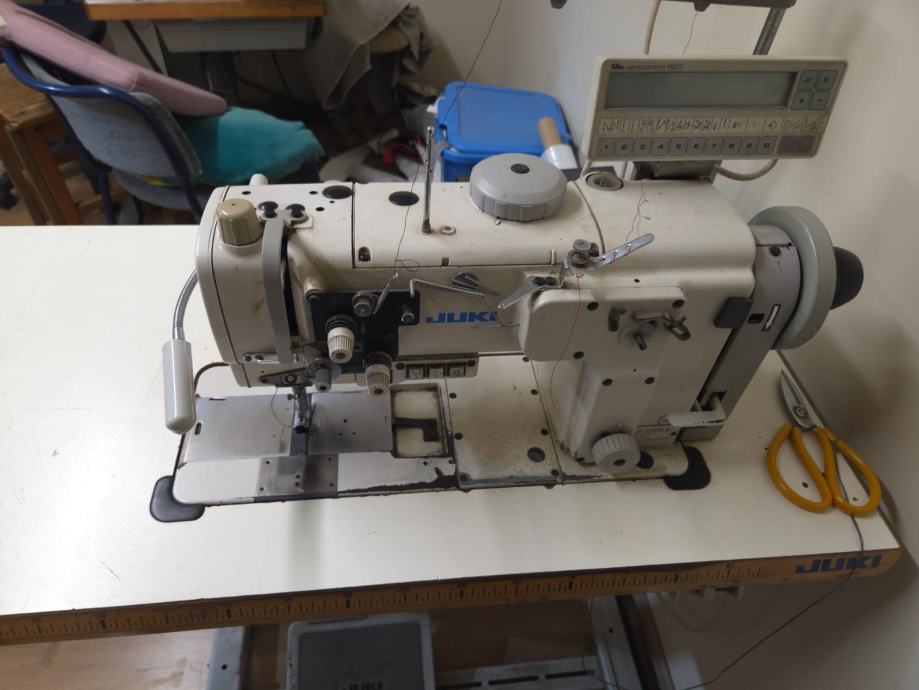 Prodaje se Tapetarska šivaća mašina Juki LU-2210N-6, mašina ima trostruki transport, pneumatsko dizanje capice automatsko rezanje konca, variocontrol efka 820.