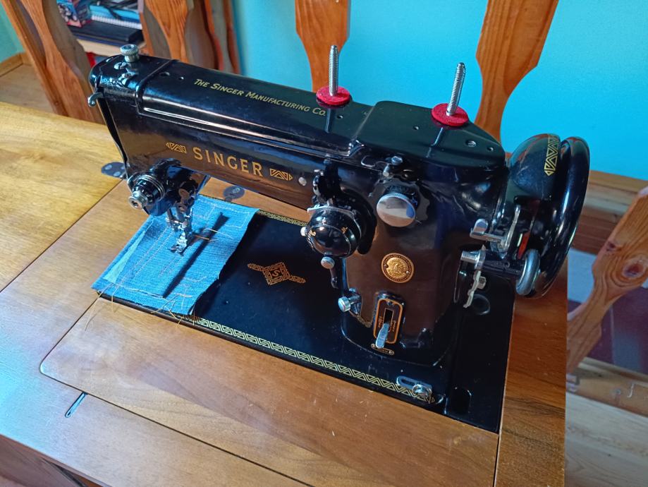 Šivaća mašina Singer 306M (serijski broj MB399199) sa pripadajućim ormarićem.