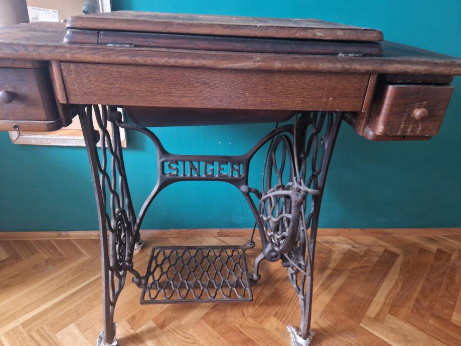 Prodajem originalnu antiknu Singer šivaću mašinu (singericu) s karakterističnim metalnim postoljem i drvenim poklopcem.