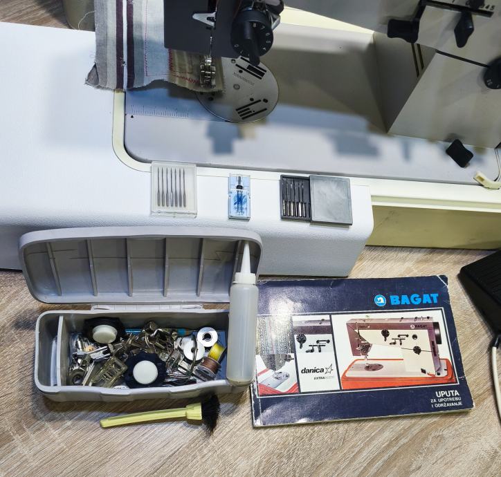 Prodaje se šivaća mašina sa slika u odličnom stanju, uredna i ispravna sa pripadajućim priborom, uputstva za upotrebu, proširenje radnog stola, dodatne igle, dupla igla, sve je vidljivo na slikama i tako se prodaje.