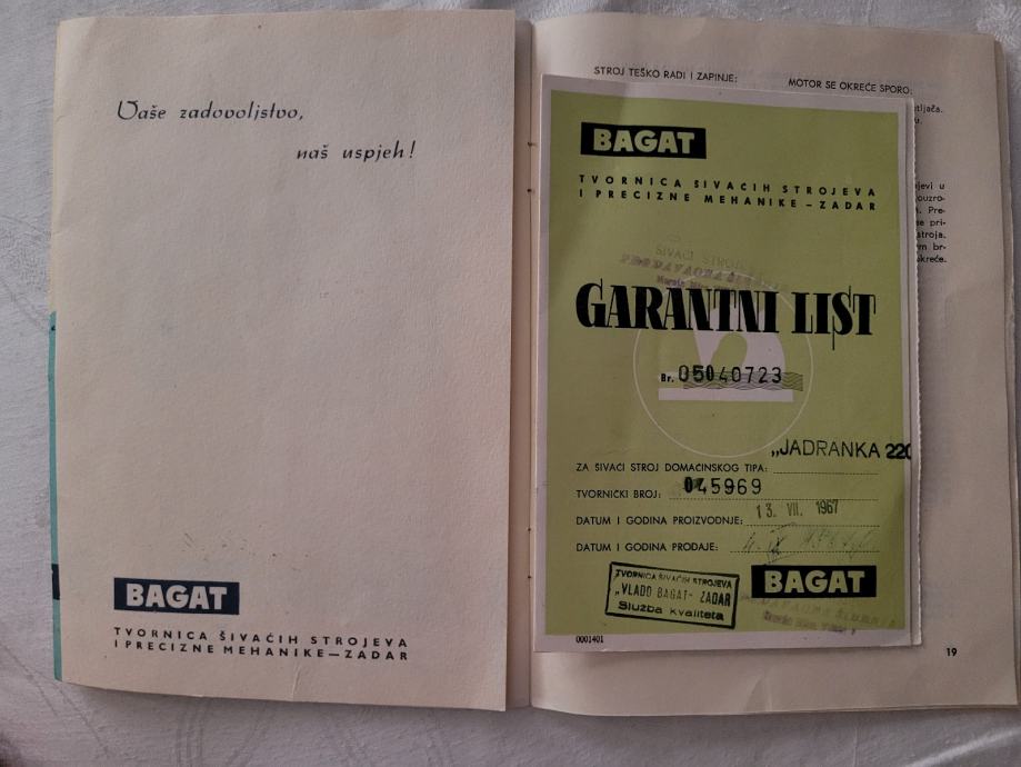 Prodajem izpravne sačuvane mašine s original Bagat podstovljem. Bagat je iz 1967 god. i postoji original uputsvo i garantni list. Dodatni pribor također postoji