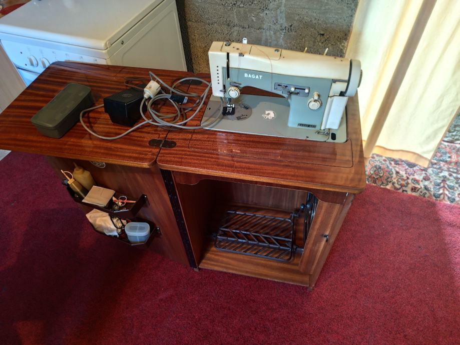 Prodajem šivaću mašinu Bagat Super Slavica smještenu u originalnom drvenom ormariću s nogom. Mašina je plave i sive boje, a dolazi s uputstvom za upotrebu i održavanje. Ormarić je izrađen od drva u smeđoj boji te ima prostor za odlaganje pribora i dodataka. Uz mašinu dolazi i nožna papučica te ostali sitni dodaci vidljivi uz mašinu.