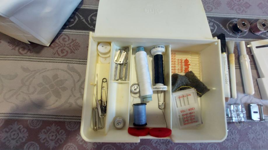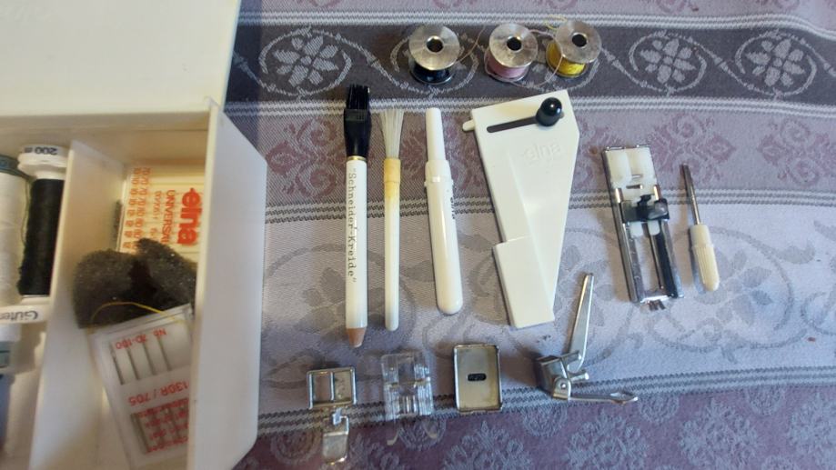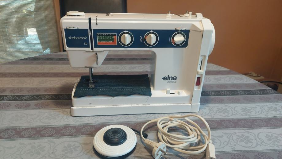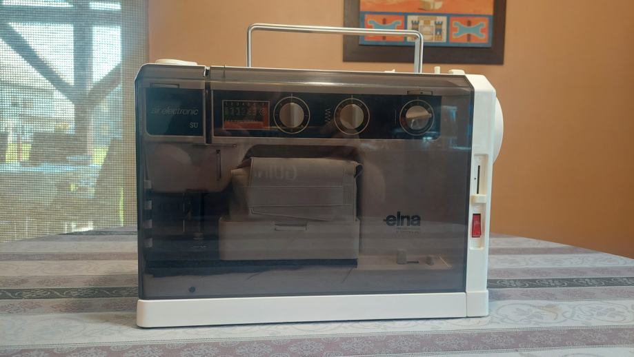 Šivaća mašina ELNA Air Electronic SU 68 portabl u koferu. Potpuno ispravna i funkcionalna. Uščuvana bez znakova korištenja, jako malo upotrebljavana, s priborom i tasterom.