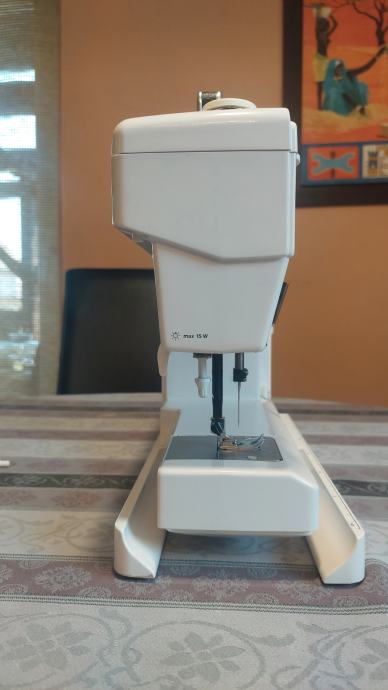 Izuzetno kvalitetna mašina, pravo je zadovoljstvo šivati na njoj. Made in Switzerland. Jako tiha, stabilna, brza, precizna. Elektronska regulacija brzine šivanja. Jednostavna za upotrebu (pdf upute uz mašinu). Rukavna za lakše šivanje rukava i nogavica. Kompaktna 40x13x25 cm, 8,5 kg.