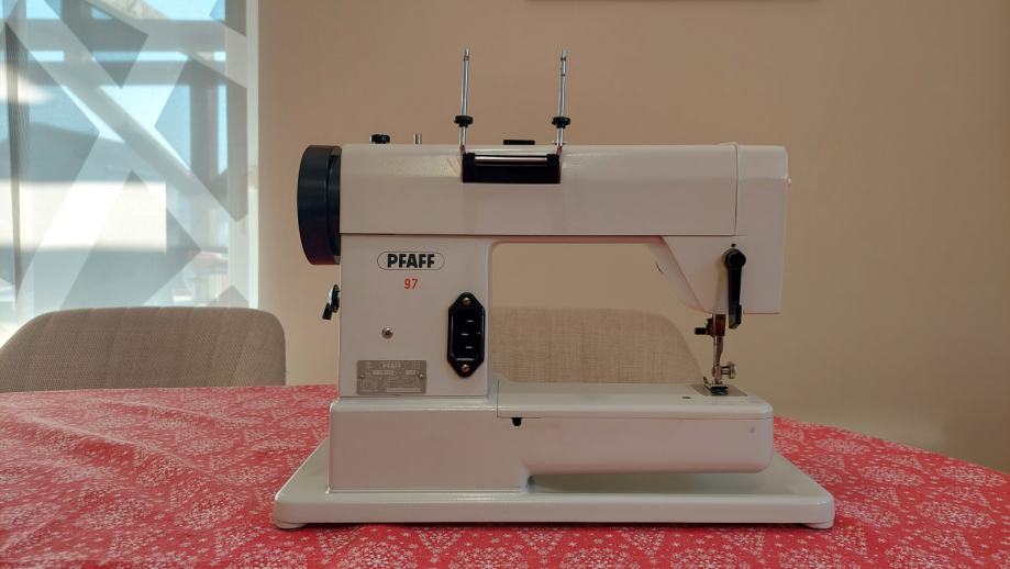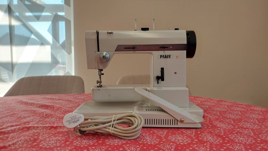 Šivaća mašina Pfaff 97 u koferu. Ispravna, uščuvana. Odlićno šiva sve materijale, traper itd. Rukavna za lakše šivanje rukava i nogavica.