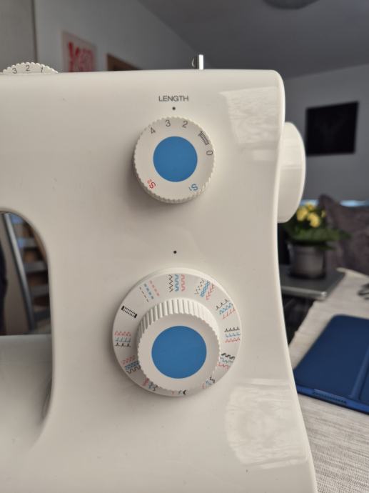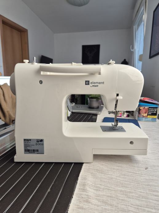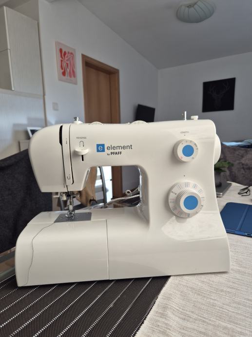Šivaća mašina Element od Pfaff-a. Kupljena nova prošle godine u Lidlu za 130€, rijetko korištena, sve kao novo, originalno pakiranje. Uz mašinu gratis se dobije puno konaca, šivaće škarice za rezanje konca, kotačići za motanje konca i još puno toga (zadnja slika). Super mašina za početnike.