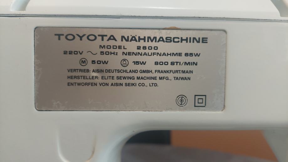Šivaća mašina Toyota 2600. Potpuno ispravna, uščuvana, metalna, stabilna, brza i precizna. Odlićno šiva sve materijale, traper itd. Rukavna, za lakše šivanje rukava i nogavica.
