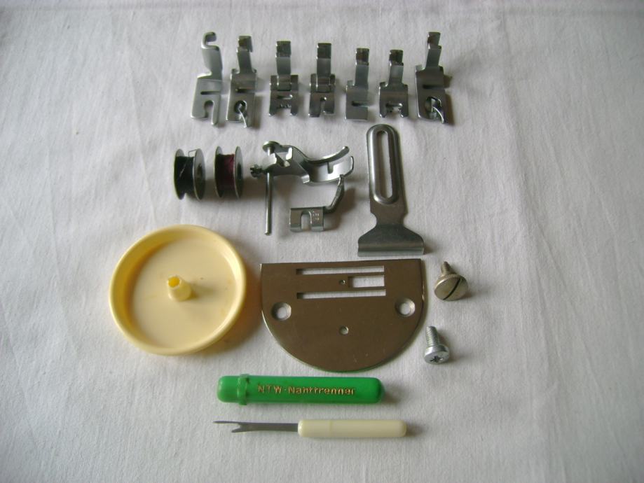 Stopice (papučice) za šivaću mašinu + još neki pribor, odlično očuvano, na kutiji je oštećen poklopac - stanje je vidljivo na slikama.