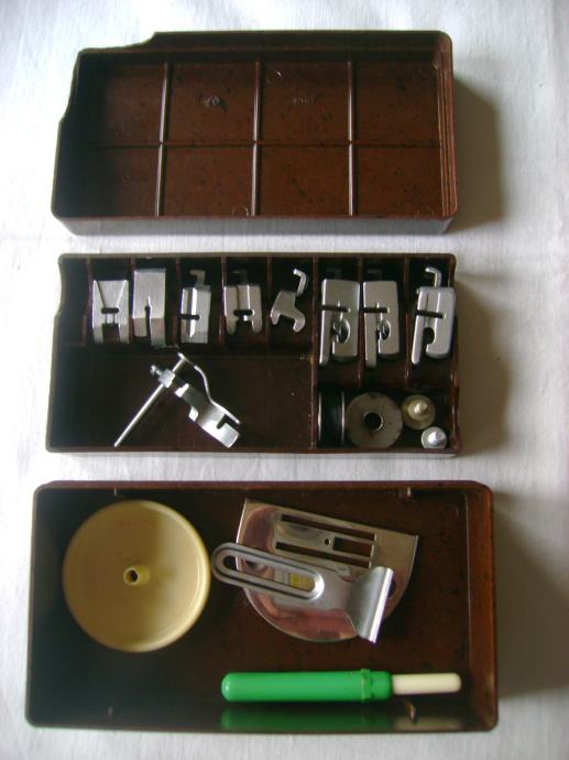 Stopice (papučice) za šivaću mašinu + pribor - u kutiji