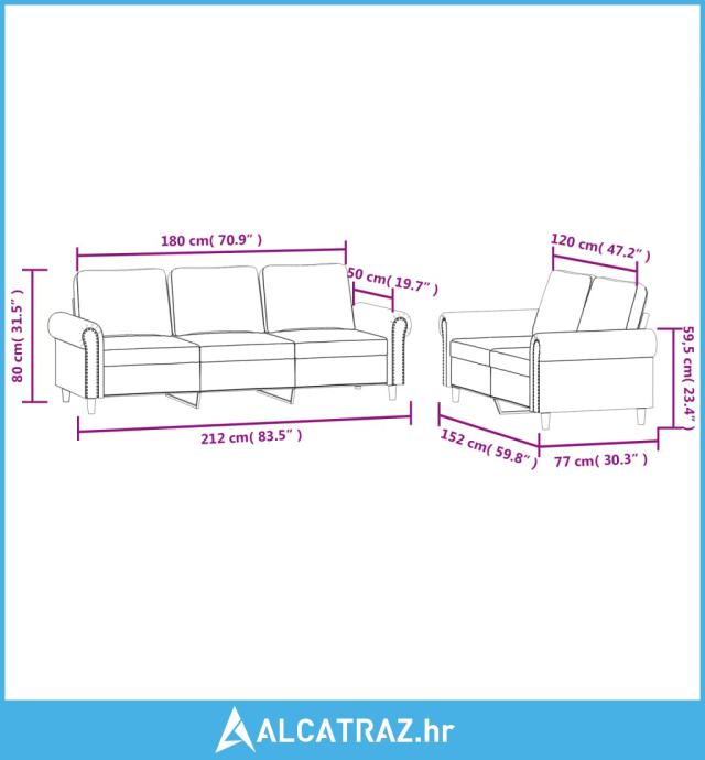 - Ukupne dimenzije: 212 x 77 x 80 cm (Š x D x V)