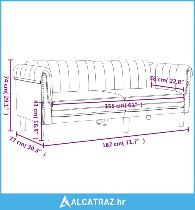 - Ukupne dimenzije: 182 x 77 x 74 cm (Š x D x V)
