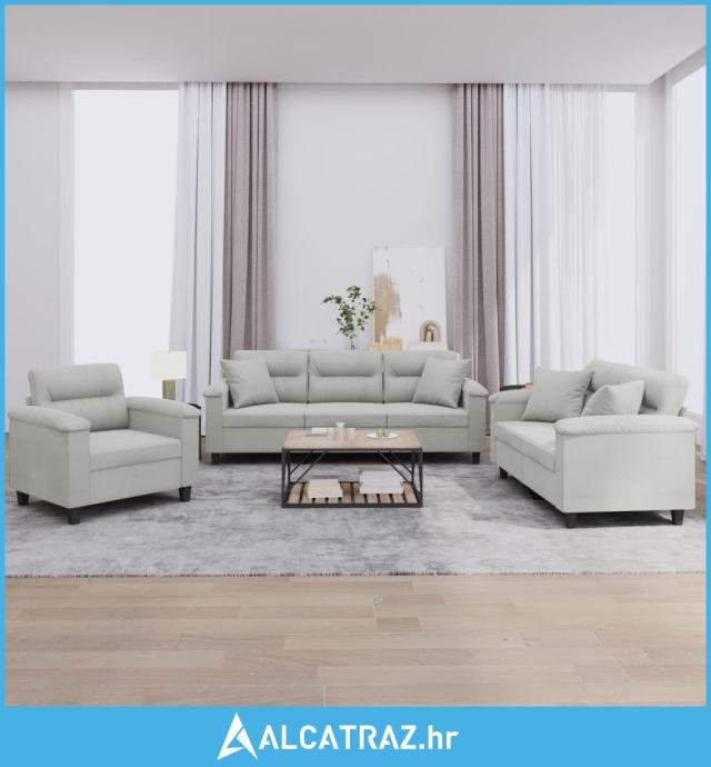 3-dijelni set sofa s jastucima svjetlosivi od mikrovlakana - NOVO