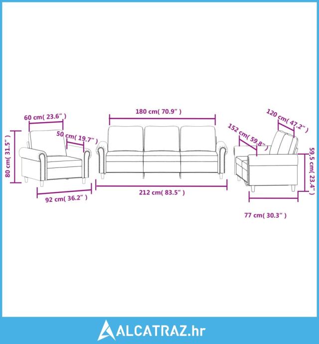 - Ukupne dimenzije: 212 x 77 x 80 cm (Š x D x V)