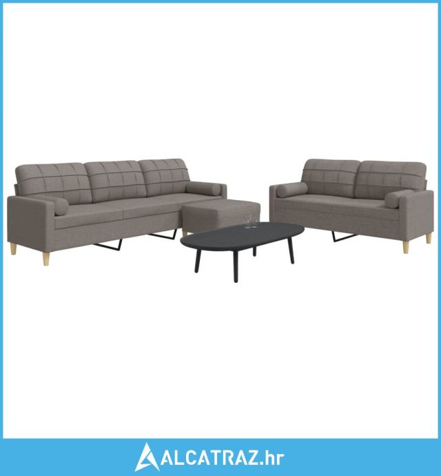 3-dijelni set sofa s tabureom i jastucima smeđesivi tkanina - NOVO
