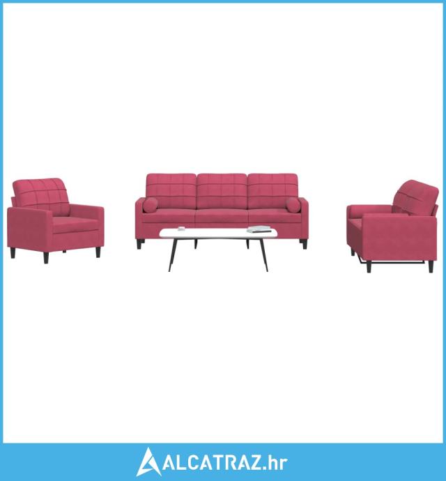 4-dijelni set sofa s jastucima crvena boja vina baršunasti - NOVO