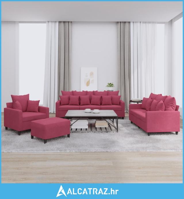 4-dijelni set sofa s jastucima crvena boja vina baršunasti - NOVO