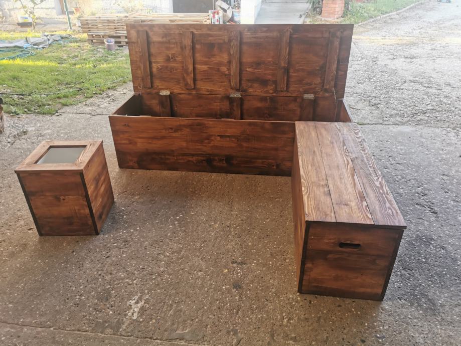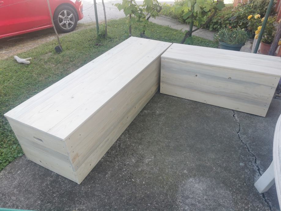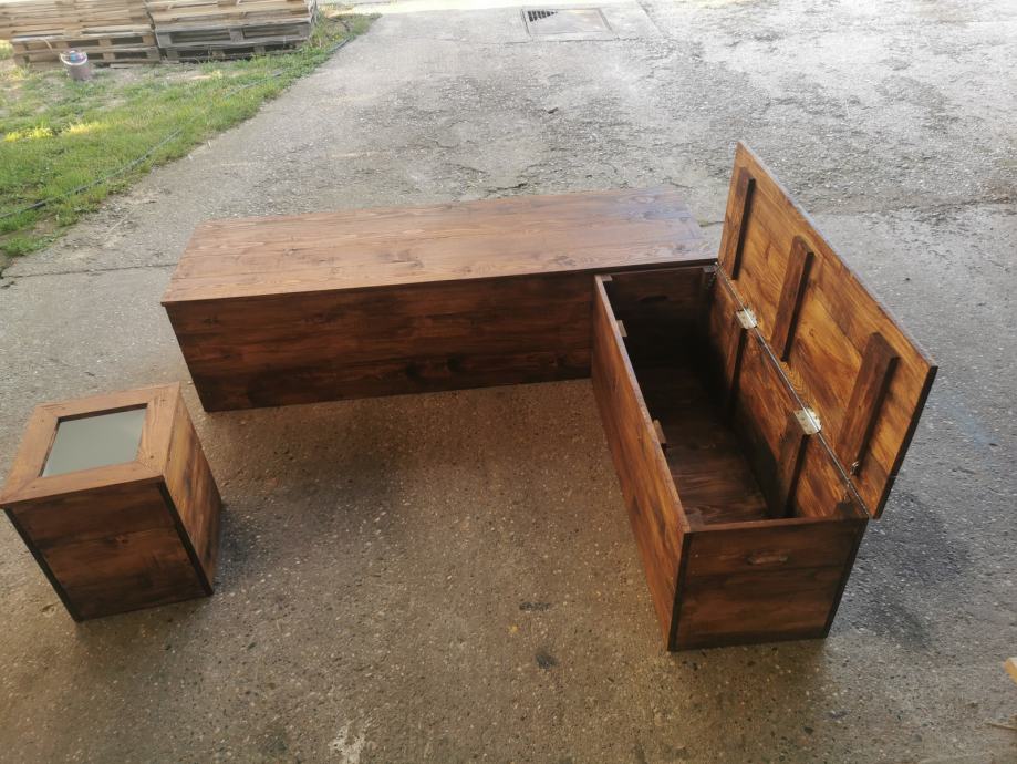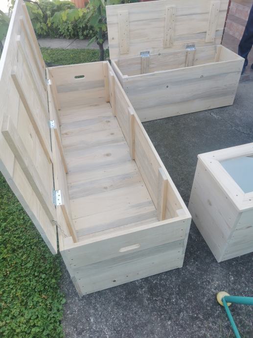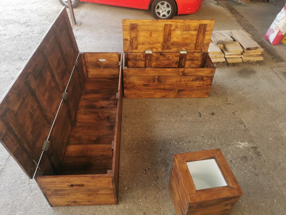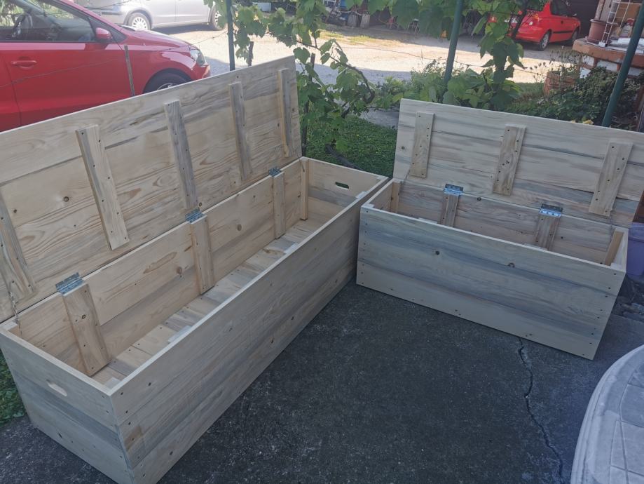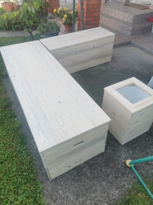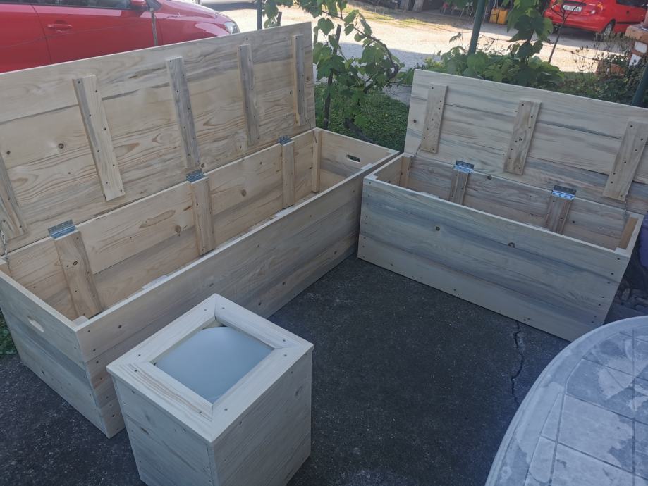 2 klupe/kutije za sjedenje i pohranu + drvena žardinjera sa posudom za sadnju