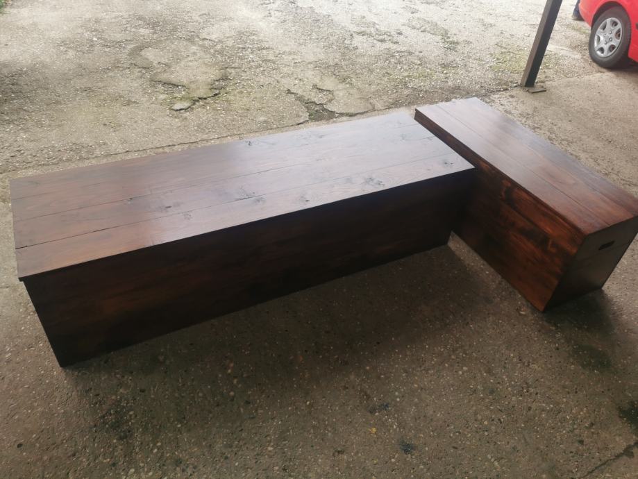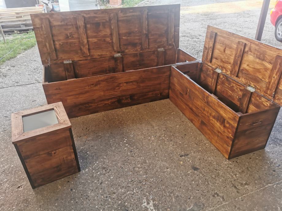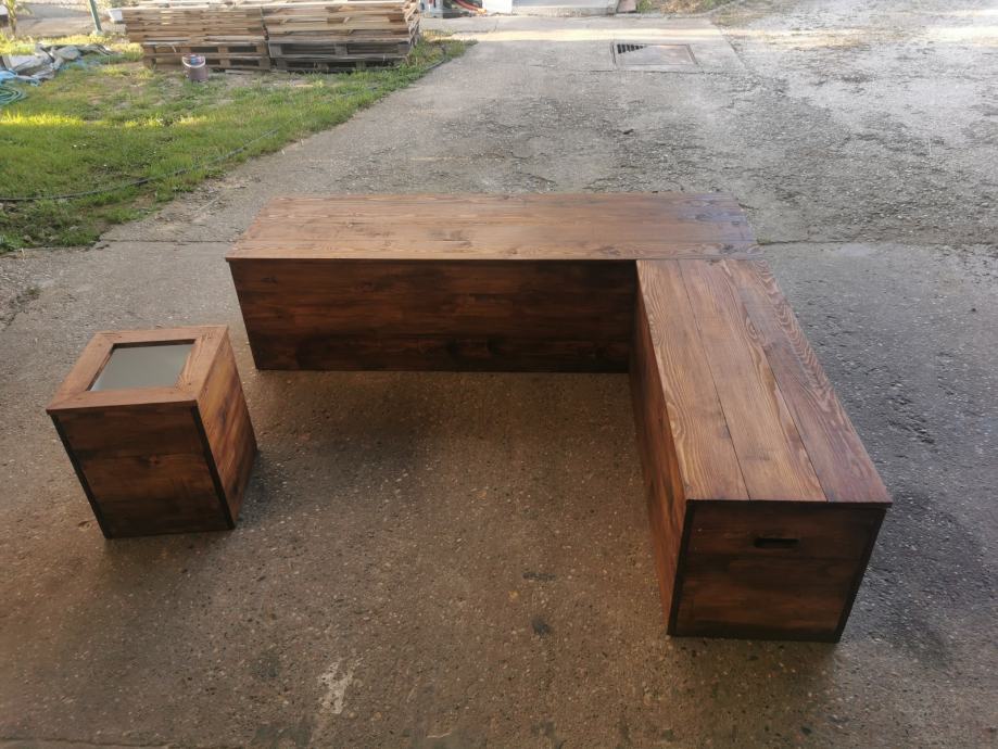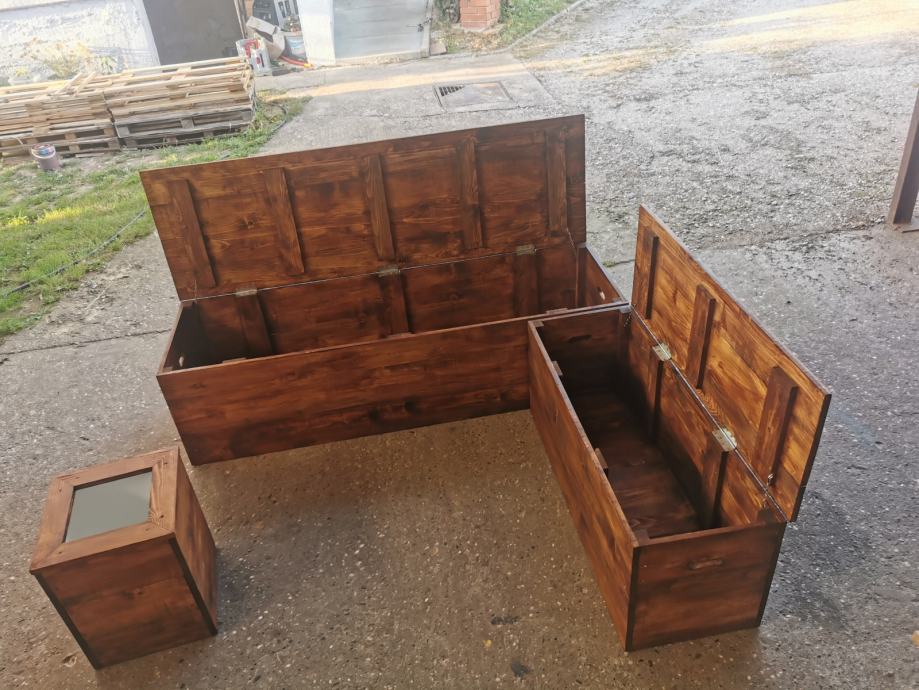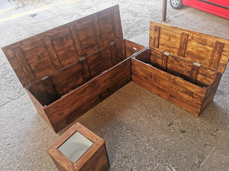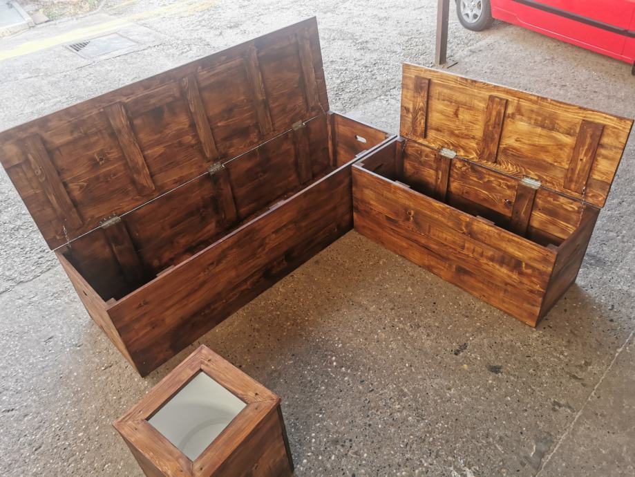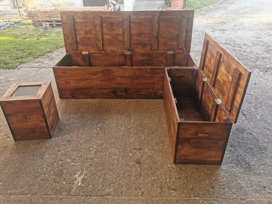 2 klupe/kutije za sjedenje i pohranu + drvena žardinjera sa posudom za sadnju