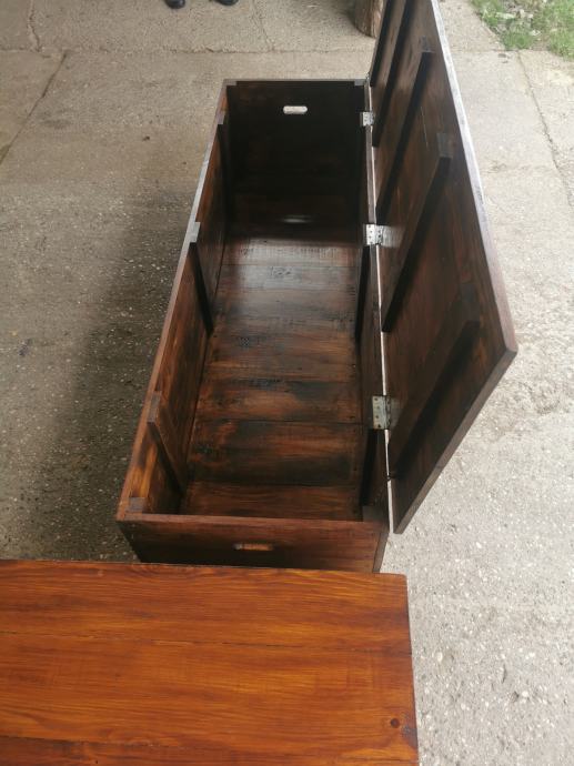 drvena kutija, drveni sanduk, drvena škrinja, kutija za drva, balkonski namještaj